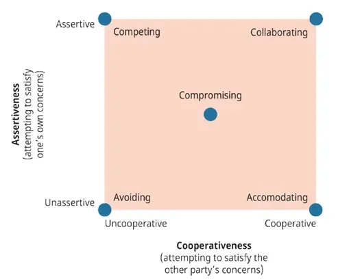 Approaches to conflict resolution (Adapted from Kenneth Thomas, “Conflict and Conflict Management”, in M.D. Dunnette (ed.), Handbook of Industrial and Organizational Behavior)